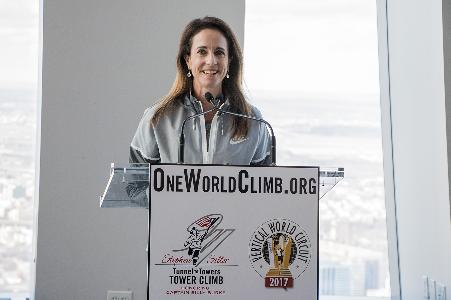 “ I’m thrilled to be here for the launch of the One World Tower Climb and the 2017 Vertical World Circuit.” She stated. “It’s quite emotional to be here, to hear the stories and to think you’re climbing up something …that’s gone. This is a rebirth. You can feel the positivity in the tower, in the Stephen Stiller Foundation and to see athletes that are a lot more challenged than I am, is all so incredibly inspirational,” added Walsham.