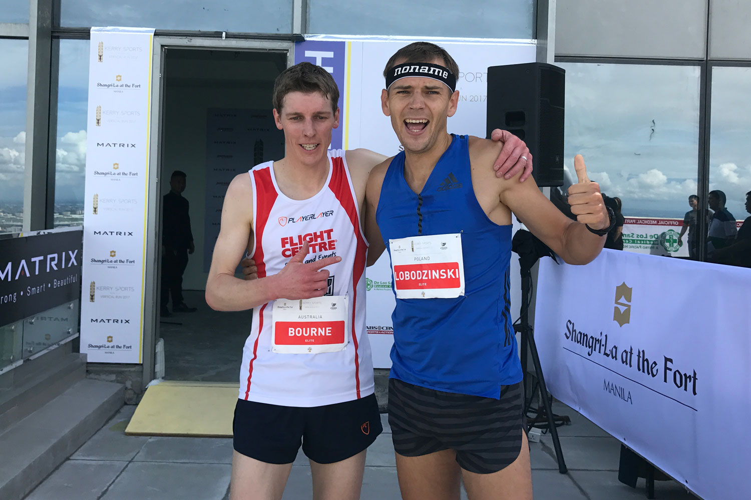 Mark Bourne and Piotr Lobodzinski, second and first at Kerry Sports Manila Vertical Run. ©Sporting Republic