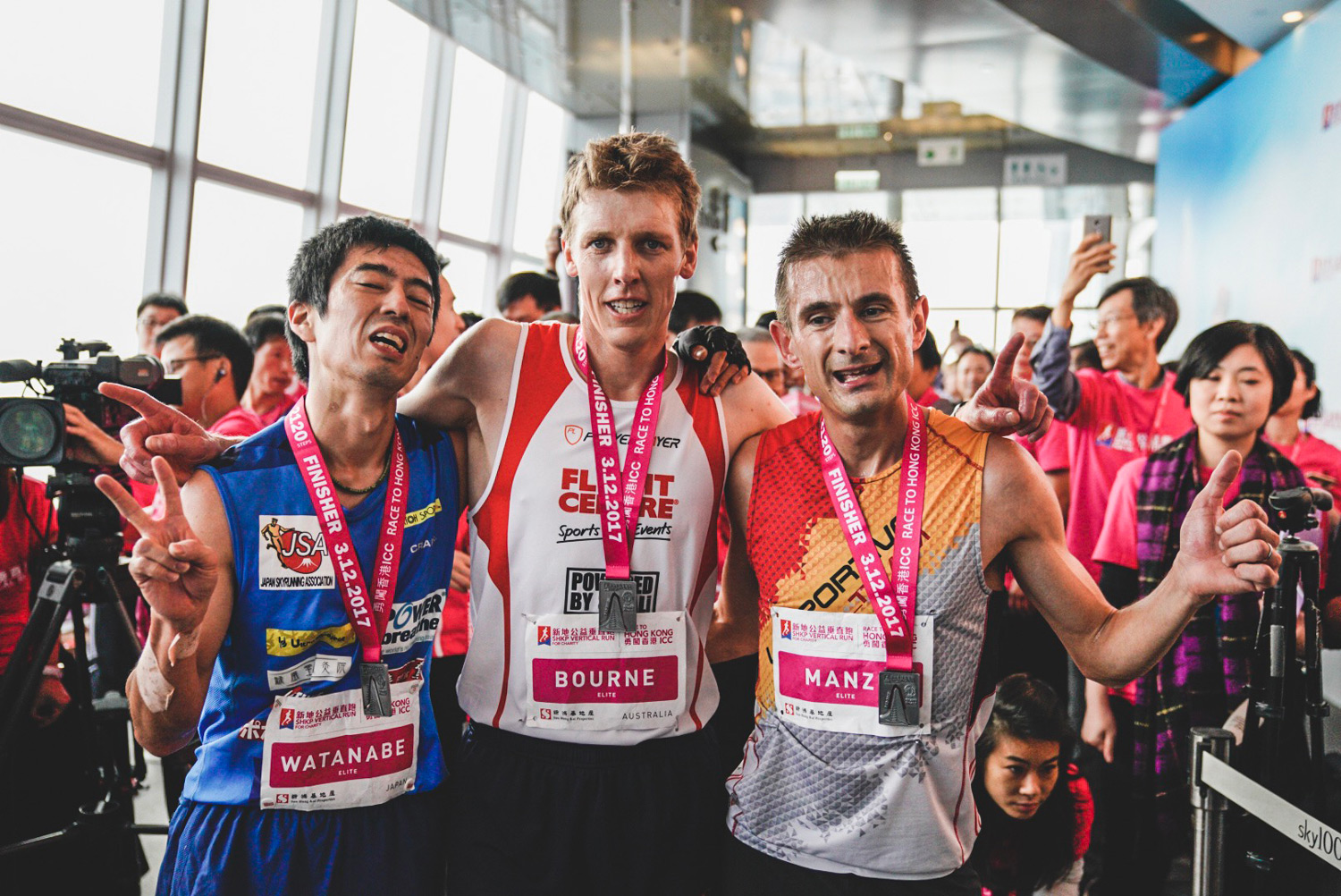 A record 2,000 runners from over 30 countries climbed to the top of Hong Kong’s tallest tower at the Grand Finale of the 2017 Vertical World Circuit, Sunday, December 3. Australians Suzy Walsham and Mark Bourne were the race winners but the World Champion titles went to Walsham and Poland’s Piotr Lobodzinski.