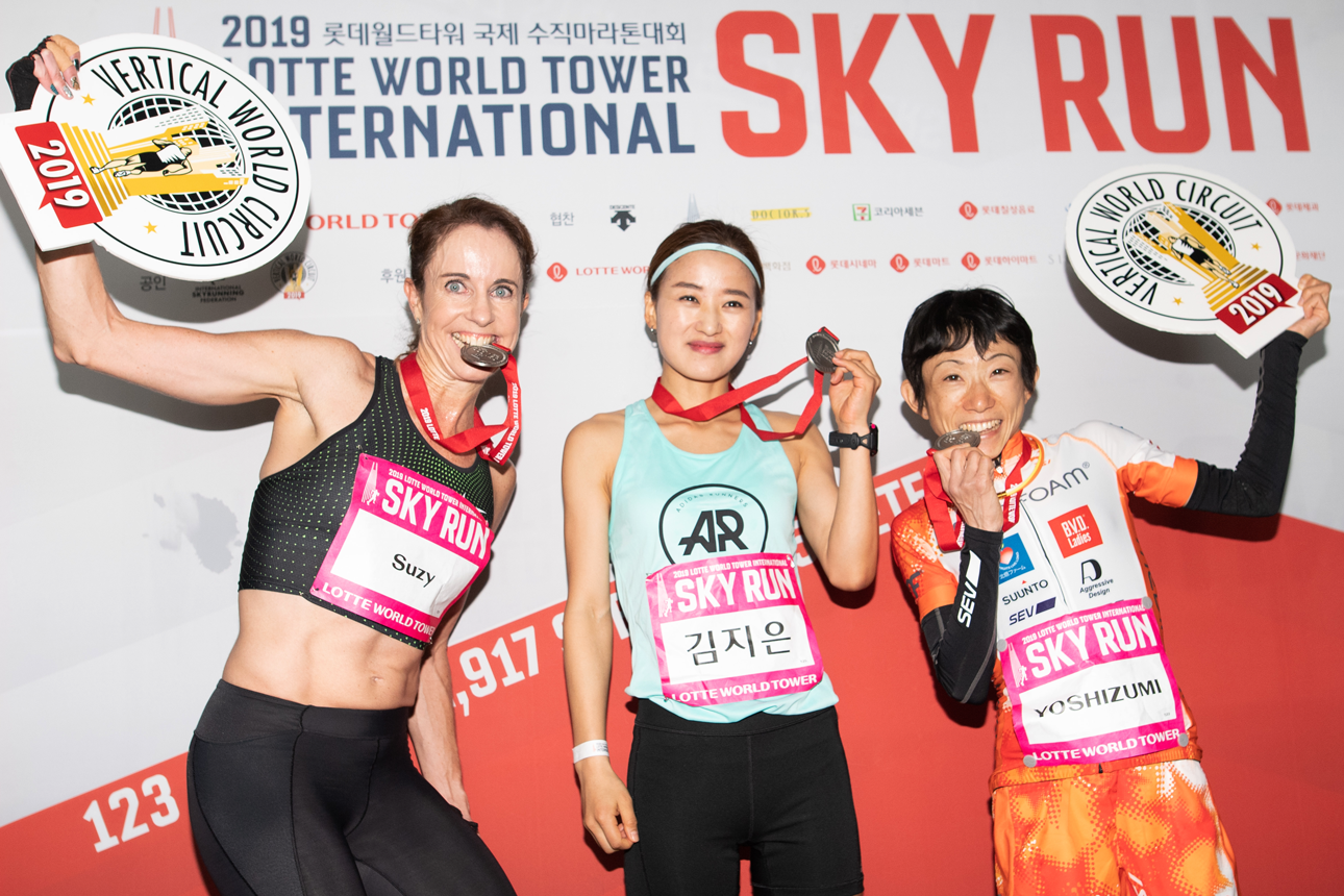 The glittering line-up promised at the 2019 Vertical World Circuit® launch in Seoul outshone expectations with the first two men summiting under record time. The third edition of the Lotte World Tower International Sky Run saw a record 1,600 competitors take part today in the fifth tallest building in the world and the highest race on the circuit.