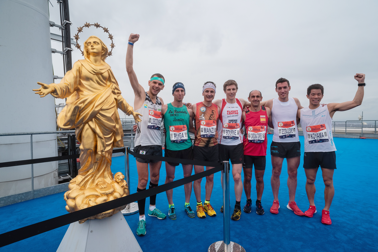 Top runners celebrating with the “Madonnina” on the summit of Allianz Tower. ©Allianz