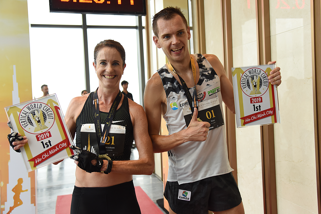 The fastest times up the 81 race floors and 2,383 steps of South East Asia’s highest building and the world’s 14th tallest tower were established by reigning VWC champions, Poland’s Piotr Lobodzinski in 11’35” and Australian Suzy Walsham, in 14’36” in a field of 450 runners.