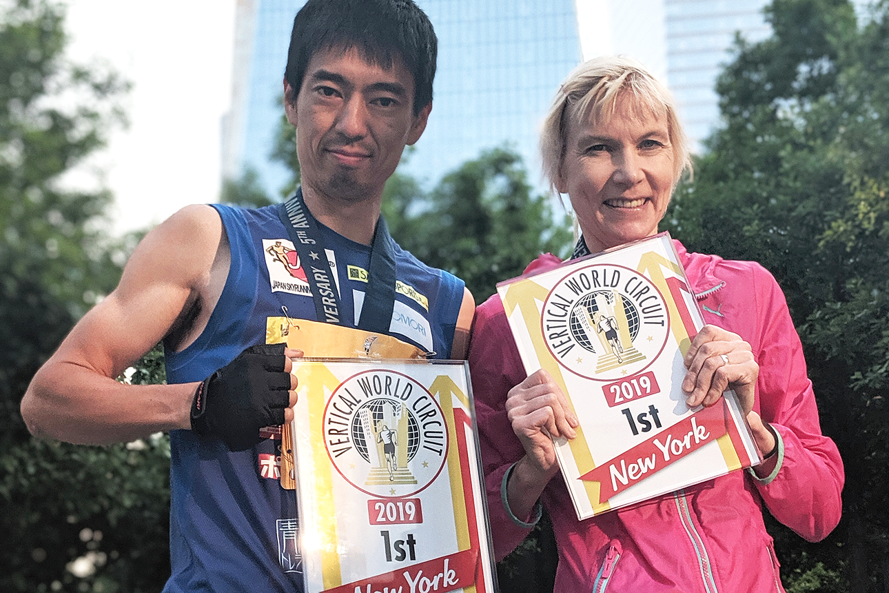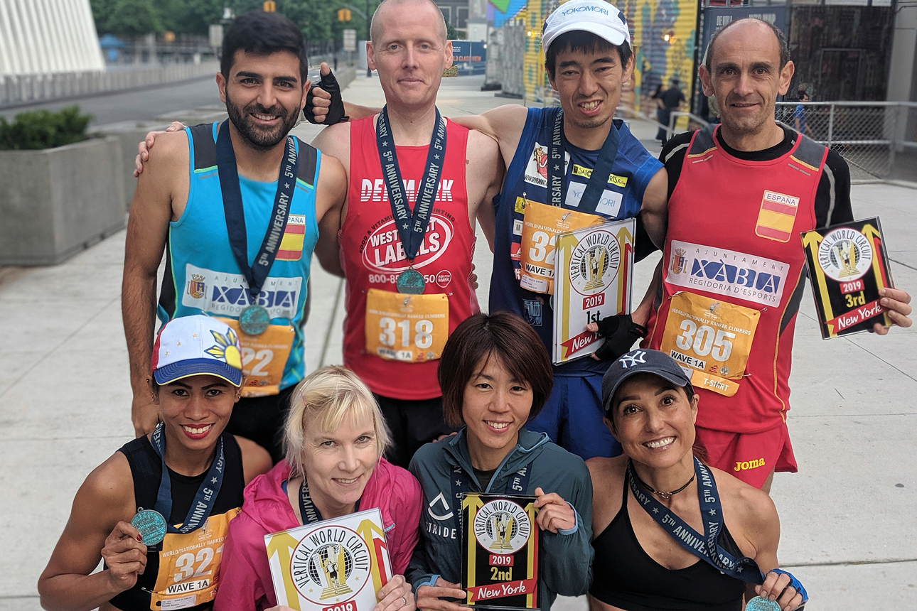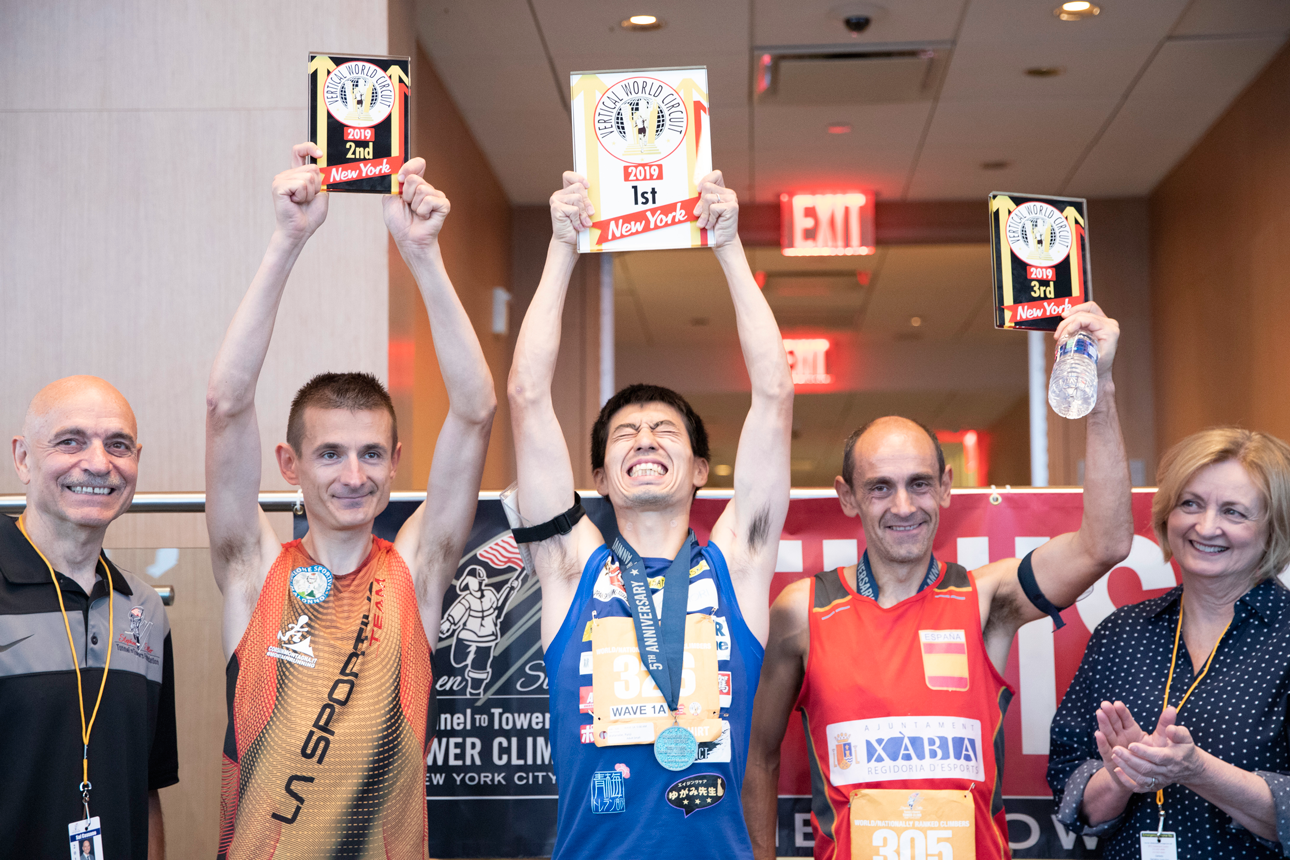 After a pre-dawn start and an incredible performance of racing up the 2,226 steps in 12’37”, Watanabe collapsed on the 102nd floor finish line in tears. “I’m really happy and crying now. Two and a half years have passed since I started vertical running. I had a chance to win several times, but I couldn’t win. For the first time today, I’m very happy and proud to have won the victory here in New York!” he exclaimed. “There’s a reason for my tears. A lot of VWC members competed together. I’ve been rewarded with a lot of hard practice so far. There’s a family that sent me from Japan with great care. My wife, my son, thank you so much!”