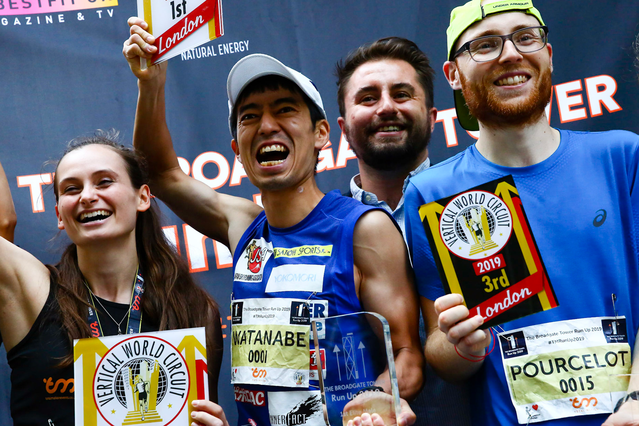 In the men’s race, Ryoji Watanabe from Japan nailed another VWC win and crushed the standing record to close in 3’41”, slicing off 17 seconds. “As London is quite far from my country, Japan, I’m very happy to win the Broadgate Tower Run Up. I’m also very excited to have won two races of the 2019 Vertical World Circuit®,” he commented. “Because the course was shorter than other VWC races, it was difficult for me to adjust during the race, but I was able to prepare the strategy for London after my New York win and perform well. I’ll be doing my best to win the next VWC race in Beijing in August.”