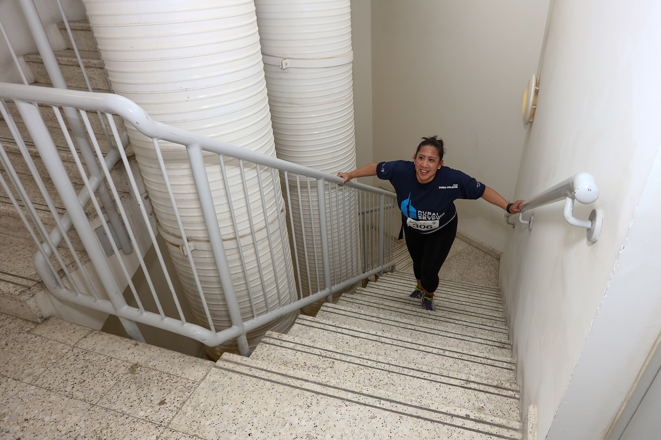 Enjoying the stairs in the Jumeriah Emirates Towers, 2017. ©Dubai Holding SkyRun