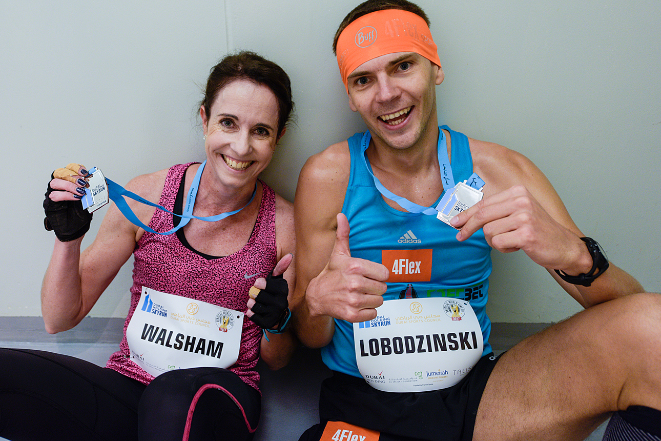 Dubai Holding SkyRun record holders, Suzy Walsham and Piotr Lobodzinski. ©VWC