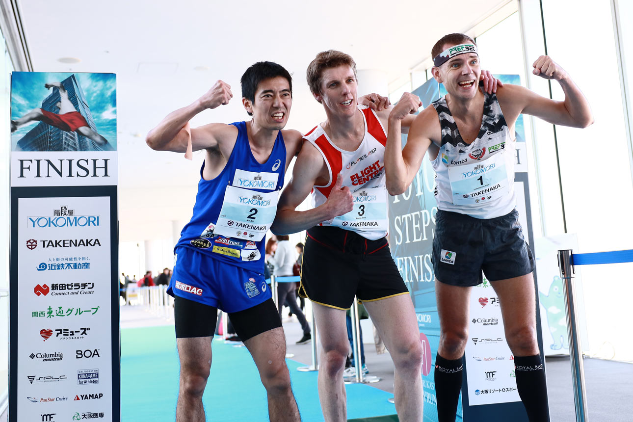 It was a glorious end to the 2019 Vertical World Circuit® today at the final of the 10-race circuit at the Harukas Skyrun in Osaka, Japan, where Australia’s Mark Bourne crushed the record, but left the VWC world champion title to Poland’s Piotr Lobodzinski. Lobodzinski takes the world title for the sixth time together with Australia’s Suzy Walsham, crowned for the eighth time.