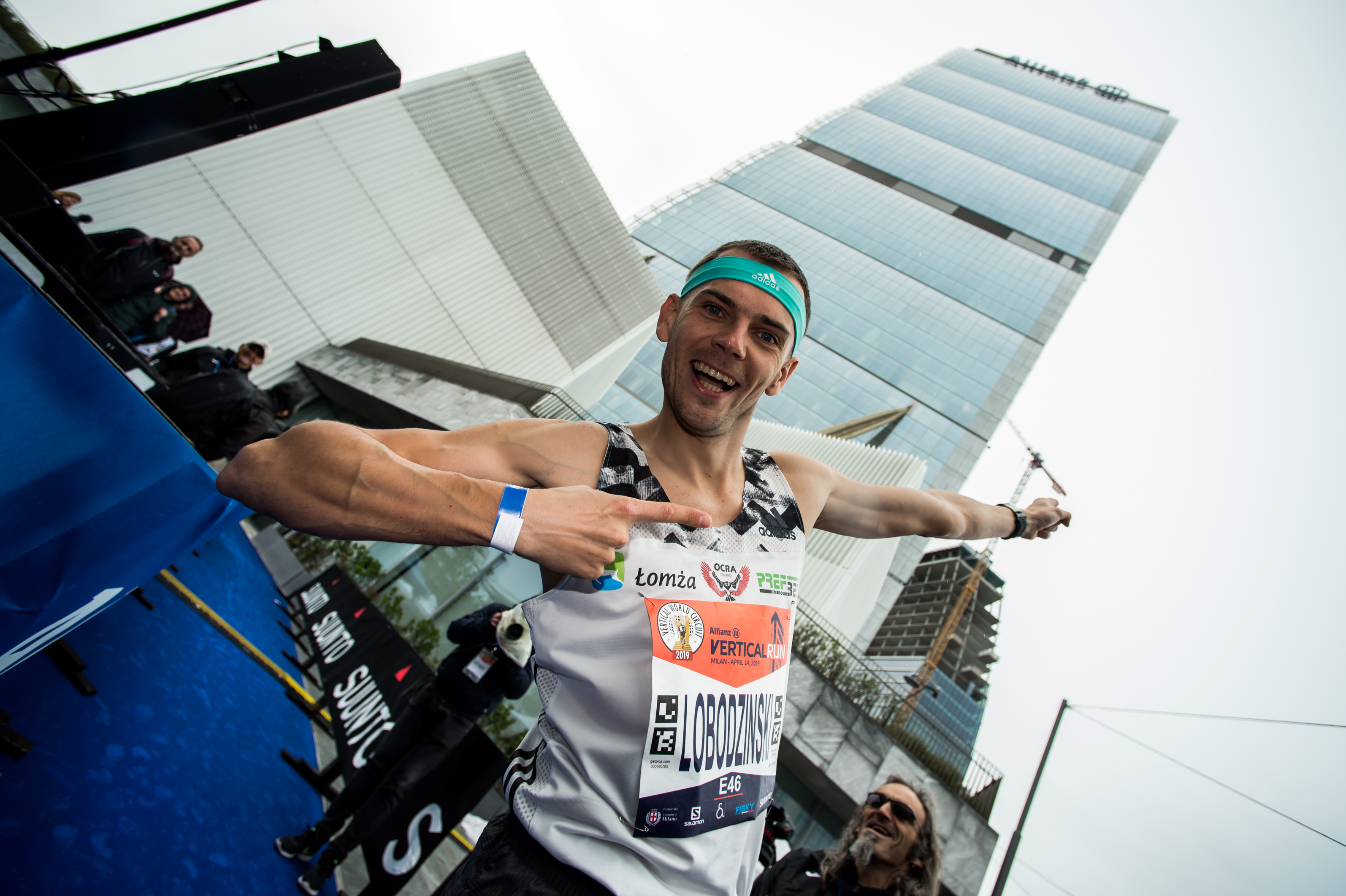 Piotr Lobodzinski from Poland, six-time VWC champion, 2019 winner in Milan at the Allianz Vertical Run. ©Allianz